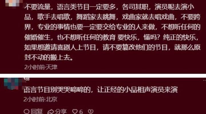 “这哪是春晚节目征集,分明是粉丝应援现场,想提个关于语言类节目的建议,评论刚发就被淹没了。”